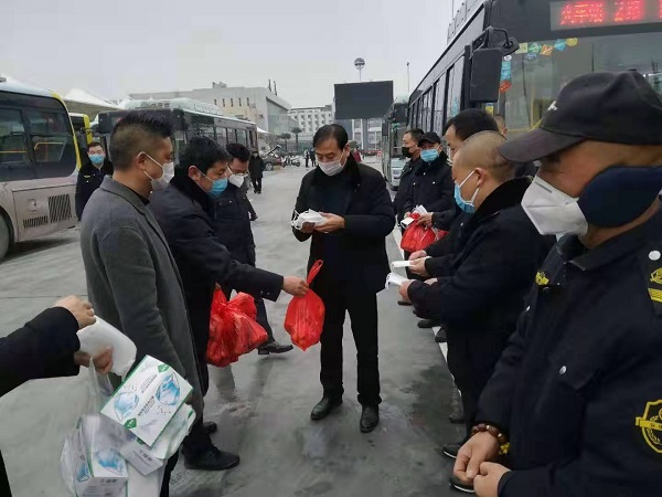 黨委書記、董事長張曉強為一線職工分發(fā)口罩