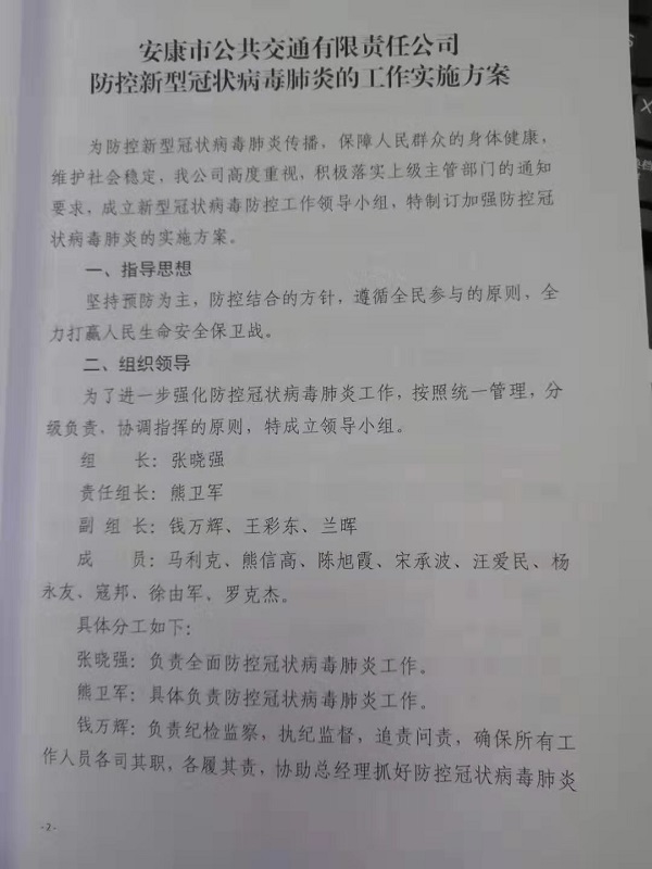 在節(jié)日前夕,公司召開疫情防控工作緊急部署會,成立新型冠狀病毒肺炎防控工作領(lǐng)導小組,部署防控疫情工作,要求各部門要本著“嚴密防控疫情、確保春運安全”的工作思路,全力以赴做好防控工作,發(fā)現(xiàn)問題第一時間上報,保證公交乘車環(huán)境安全。