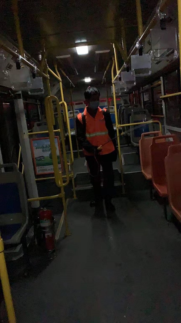 一是及時為全體駕駛員配發(fā)醫(yī)用口罩。配備540瓶消毒液,對營運車輛進行消毒,特別是對乘客接觸較多的扶手以及座椅、地板、投幣箱等部位進行重點消毒清潔,不留一處死角。建立車輛衛(wèi)生消毒臺賬,詳細記錄每日工作數(shù)據(jù),確保消毒工作落實到位。